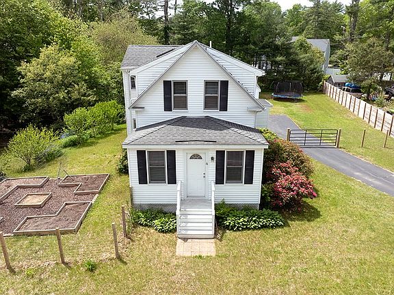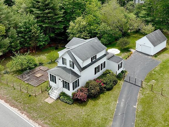 Discover comfort, character, and natural beauty in this well-maintained Colonial-style home on 2.03 acres with 85 feet of private frontage on Bates Pond. A bright sitting room greets you at the front door, leading to a spacious living and dining area, a full bath with laundry hookups, and a convenient first-floor bedroom—perfect for guests or a home office. You'll also find the well-appointed galley kitchen that leads to the mudroom and sunny back deck. Upstairs offers two large bedrooms with wall-to-wall carpet and an updated full bath where you'll enjoy views of the fully fenced backyard. Outdoors, you'll notice the oversized one-car garage and the raised garden beds that add charm. A private trail leads to your own Bates Pond shoreline—ideal for relaxing, watching wildlife, and enjoying peaceful views. Don’t miss this rare chance to own a serene pondfront retreat.
