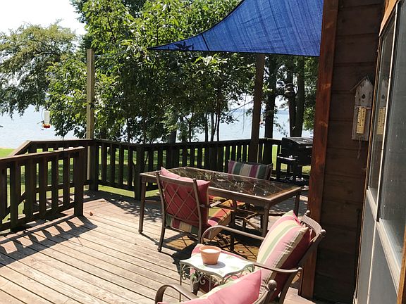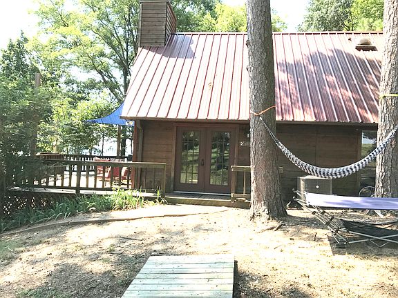 Awesome vacation property on Lake Bob Sandlin! This precious lakefront home sits on a partially secluded half acre with approximately 115 feet of shoreline. The home has 2 oversized bedrooms, each with its own private full bath. Was previously set up to sleep 14. Huge windows for constant lake views from nearly every room! Custom paint colors, custom vertical blinds, wood burning fireplace with forced heat and glass tile surround, convection oven, huge deck overlooking lake, storage building, fire pit, lots of pine trees and fishing pier. New AC July 2017, new steel roof 2015. Only 90 minutes east of Rockwall! Sold partially furnished. You can canoe, fish or kayak right from the backyard. We are at the end of the lake so probably not enough depth for a power boat here - possibly a pontoon boat may work. Has month to month renter in during the week but can be shown most weekends. Won’t last long!