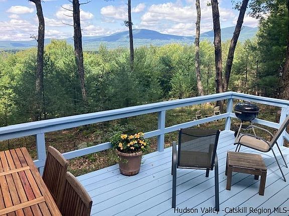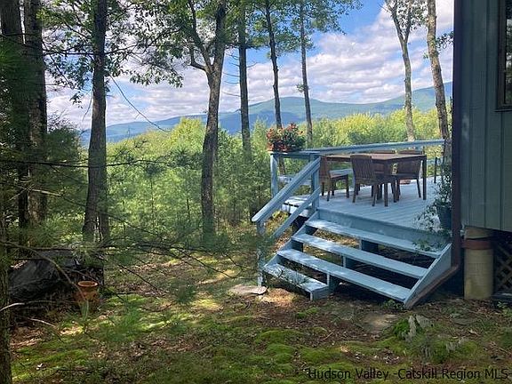 Beautiful home and studio on 10+acres with panoramic mountain views has a totally private and peaceful setting. Enjoy true quiet in this natural, wooded landscape. Built in stages with care to detail and comfort this spacious home has a wall of windows facing the view seamlessly joining the outside and the inside spaces. View sunsets and the morning sunglow on the vista from most areas of the house. The post and beam LR with vaulted ceiling and gleaming wood floors has a sunny loft space getaway. The deck beyond is an inviting place to share a meal and conversation. Well thought out design includes a galley kitchen with rich cherry wood cabinets, private 2-bedroom suite, full bath and den on first floor. Upstairs is its own world with a beautiful multi windowed bedroom, generous bathroom and office. A few steps takes you to the two-car detached garage with two artist studios, and a half bathroom offering tremendous potential for a home business and/ or lovely guest suite. Natural, maintenance free landscape with a sweet vegetable/ flower garden. There’s a generator for peace of mind, mini splits in every room, and a super dry basement.
