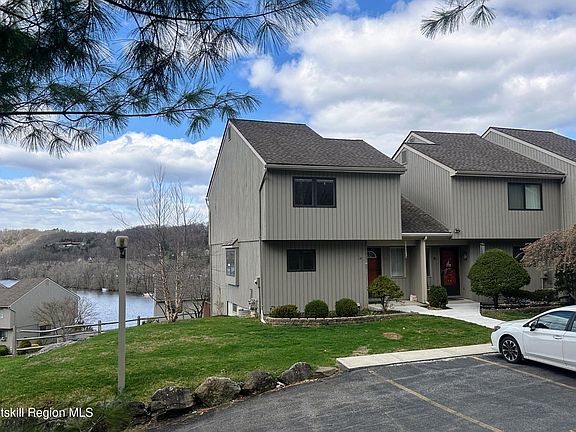 This wonderful end-unit condo offers abundant natural light and scenic views of Rondout Harbor, all within a short distance to the vibrant Kingston Strand. Step into a freshly repainted interior featuring hardwood floors and an open-concept layout. Enjoy relaxing or entertaining on your private balcony overlooking the water. The finished walkout basement adds flexible living space and includes a third bedroom, currently open to the family room—easily convertible back to a private bedroom if desired. The town classifies this unit as a 3-bedroom. The monthly HOA fee of 415 dollars covers all exterior building maintenance, landscaping, snow and trash removal, road maintenance, and insurance. Residents also enjoy access to a shared community pool. This unbeatable location combines comfort, convenience, and charm—perfect for full-time living or a weekend retreat.