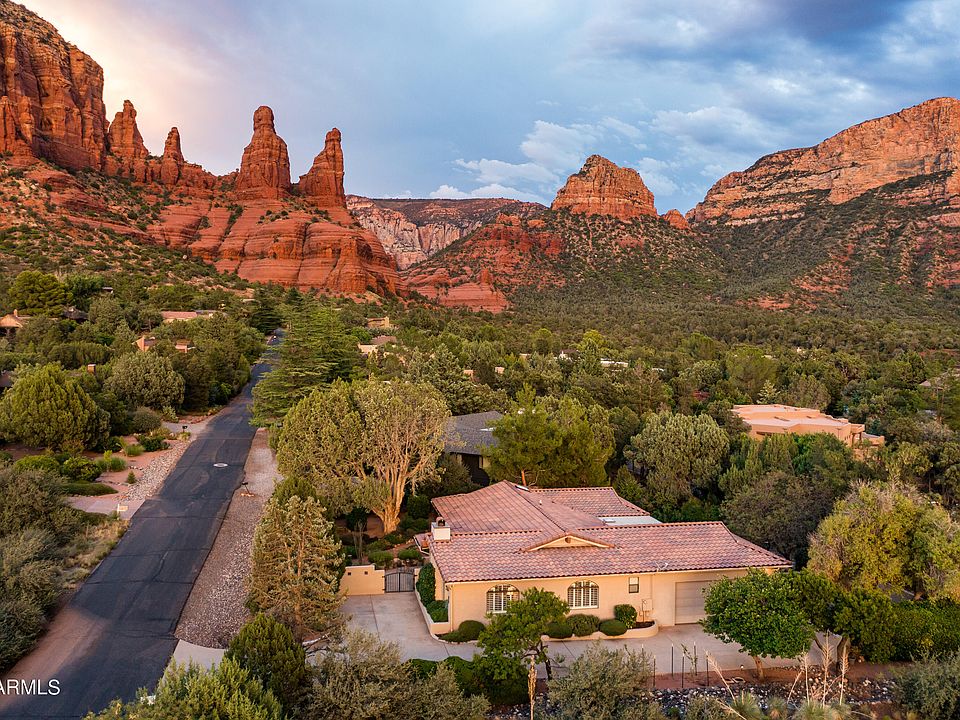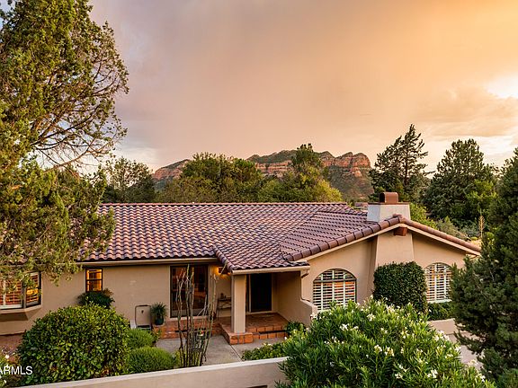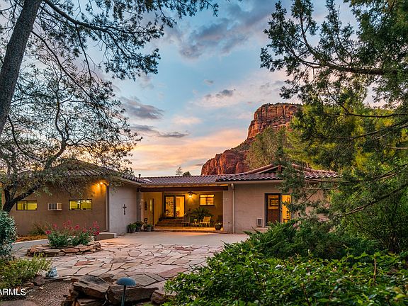 Discover your quality dream retreat in Sedona with no HOA! This 3-bed, 2-bath gem spans 2,392 sqft, offering mesmerizing views of the iconic Chapel nestled amidst the extraordinary red rock view landscape. Enjoy the craftsmanship of vaulted tongue and groove ceilings which illuminate the living room with natural light. A front bedroom with stunning red rock views, a primary bedroom direct access to the back yard, kitchen breakfast nook, dining room, and bar. Backyard boasts pomegranate, apple, fig, and peach trees, with room for a pool/hot tub. Located on a quiet street, with some of Sedona's best hiking paths mere steps away, allowing you to immerse yourself in the natural beauty of the surroundings. Only 3.8 miles to West Sedona-Uptown!