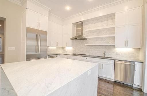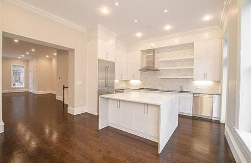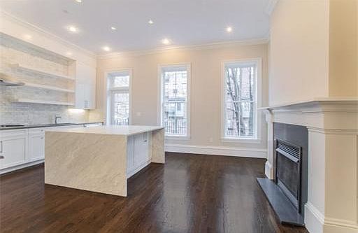 Superior 2014 new construction double parlor duplex developed by renowned Watson Development Co. and designed by acclaimed Embarq Studios. Spacious 3 bed & 2.5 baths footprint. A Carrera marble island with waterfall sides headlines the gourmet kitchen, restaurant quality appliances, sunny sitting area with gas fireplace, and direct access to a private deck. Open double parlor living area with 2nd fireplace, soaring 11-foot ceilings, and Jacobean stained hardwood floors. Grand staircase leads to the Spa-like Master Suite equipped with a top shelf shower package, marble, soaking tub, and double vanity w/fogless medicine cabinets. 2 guest bedrooms share a full bath with immaculate finishes. Additional features include a laundry room with side by side w/d, abundant storage & closet space, 2 zone Navian heating/cooling system with NEST thermostat control, audio wiring with speakers in living area and master suite, private patio with direct access to a full parking space.