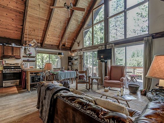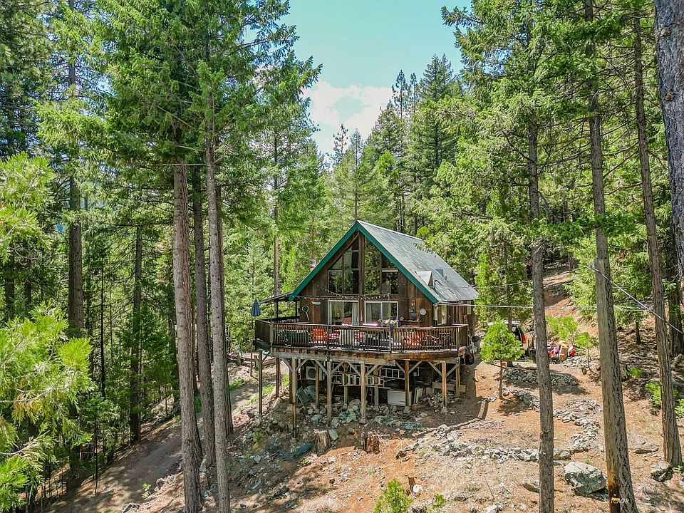 Mountain Cabin with Mountain Views. Inviting Mountain Cabin retreat with great location near Trinity River, Trinity Alps and Trinity Lake. Comforts with rustic ambiance. Options a plenty for small or larger groups with two main bedrooms, a loft bedroom in the main area along with an additional sleeping/bath with separate entrance. Open concept for living, dining and kitchen with wood flooring, floor to ceiling windows to enjoy the fabulous views, and a sliding glass door takes one to an expansive wrap-around deck for outdoor gatherings. Amenities include mini split heat and air, wood burning stove, indoor laundry, and storage area in basement. Top it off with near by eating establishments, for those days that need an eat out experience, makes this get-a-way spot, spot on!