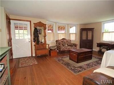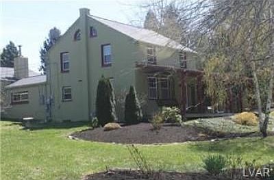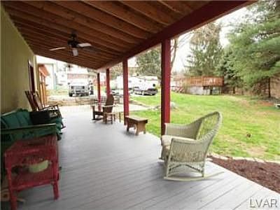 Appealing and original farmhouse style home on roomy corner lot in Macungie. From freshly manicured landscapes to the inviting, spacious front porch, this home welcomes you. First floor master bedroom with wide plank wood floor leads into beautiful bath with great corner shower complete with tile and claw foot tub. First floor family room with brick hearth, woodstove, and built in desk/hutch. Patio doors take you outside to the patterned, concrete porch with pergola and extended patio. Kitchen is unique with hardwood floor, counter island, under cabinet lighting and deep, custom made farmhouse sink with slate, Bluestone counter tops. Three bedrooms upstairs with newly remodeled bath, new carpets, and recessed lighting throughout. 30x30 garage for toys. Solar panels on roof add to its efficiency. First American One Year Home Warranty included.