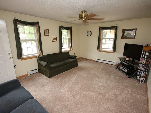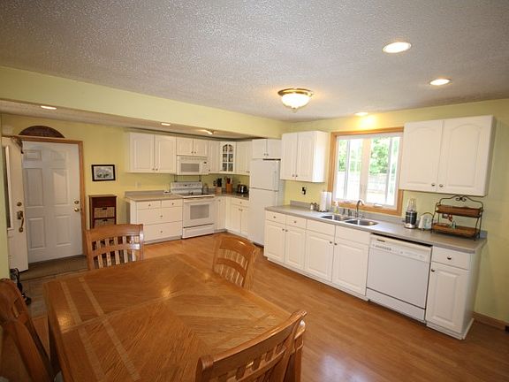 Well kept, full dormered cape features maintenance free vinyl siding, trex deck and new roof on the main house. Four bedrooms, 2 baths and a very large, open, remodeled eat in kitchen. Big 2 car garage with staircase to second level for plenty of storage. Your choice of heat with fhw oil or woodstove. Nothing to do just move in.