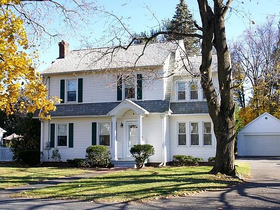 Come explore this classic New England style colonial that has been well cared for! The rustic fireplace in the living room welcomes you in, then flows into the freshly painted dining room. There is also a sun room and finished room in the basement in which to unfold and relax. This spacious home also has wood floors throughout the second level bedrooms, along with a walk up attic. Storage abounds, whether in the workshop area in the basement or in the 2 car garage. The ample sized yard also provides plenty of opportunities in which to make leaf piles to jump in. This balanced mix of old school charm and modern day updates will catch your eye!