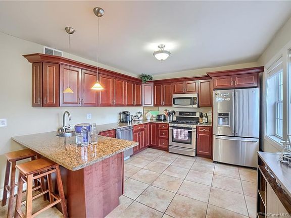 This Updated 3 bedroom 2 full bath townhouse offers over 2,000 square feet of living space. The first floor offers a dining room and an eat in kitchen with granite counter tops and stainless steel appliances. Second floor has one bedroom and full bathroom, plus a living room that has a slider to a deck. The third level has the master bedroom with a private deck and a third bedroom and full bathroom. There is plenty of closet space throughout the unit and an additional storage space offered in the basement. There is also an attached garage along with additional off street parking. Very convenient location close to hospital, schools and highways.