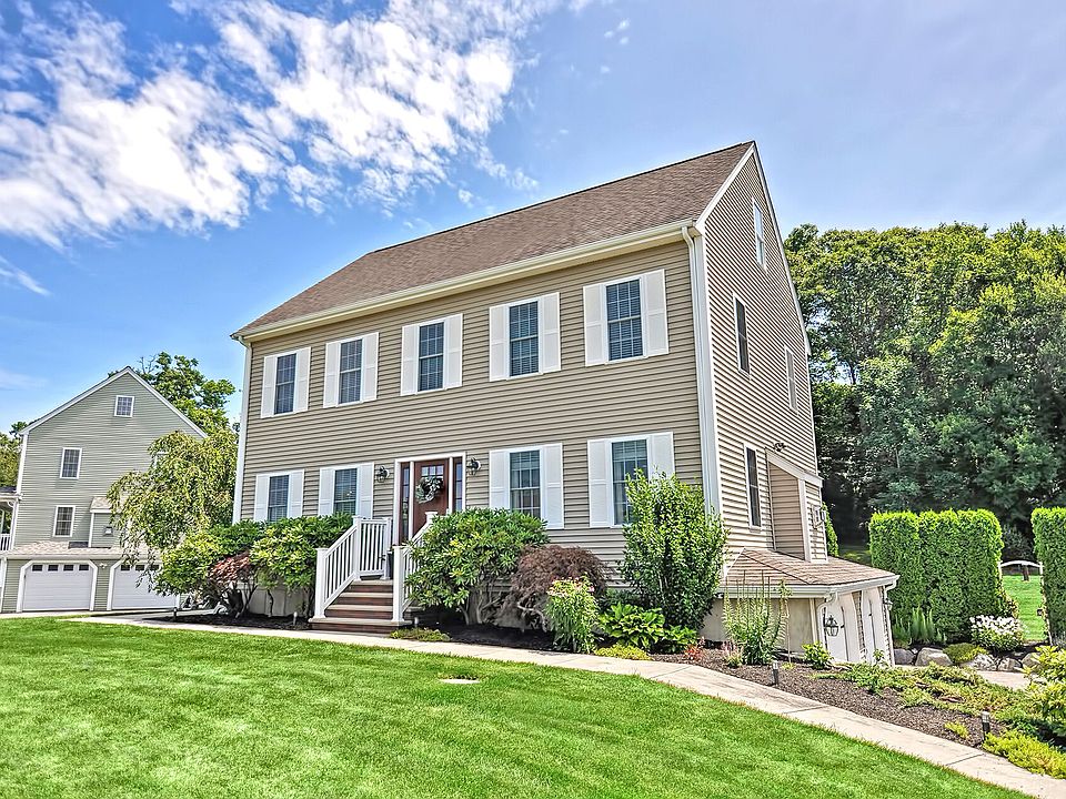 Meticulously-maintained, Custom Colonial situated on a private lot with an expansive yard and oversized deck. The main level boasts an open floor plan, perfect for entertaining, with red oak flooring throughout the living and dining area. The kitchen includes many upgrades; high-end stainless steel appliances, granite countertops, custom backsplash, a great eat-in kitchen, and wine storage. The second level offers a large Master Suite, fully equipped with a walk-in closet and private master bath and two good sized bedrooms and an additional bathroom. Seeking additional space? The walk up attic could be finished for a large bonus room or multiple smaller rooms. The finished basement is a great play space with a multi-functional mudroom design, conveniently located next to the garage. Solar panels are paid for in full and Sellers receive quarterly returns, no electric or water bill! Security system and Ecobee Smart Thermostat in place. Fall in love with this picture perfect home today!