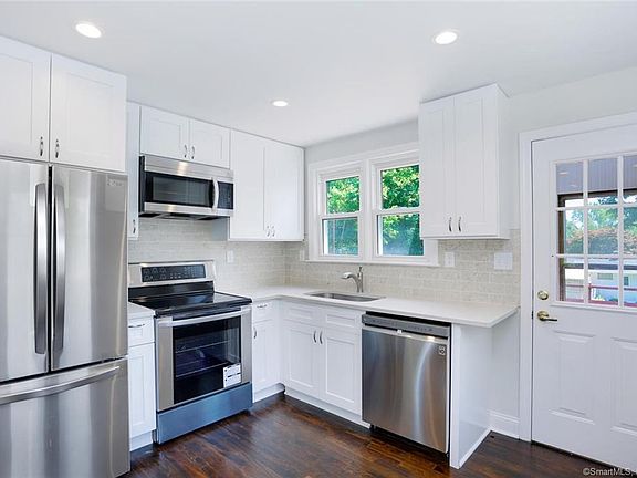 Long Hill/Jane Ryan Elem. School Neighborhood! Now priced to sell!! Great affordable price for this move in, adorable, newly remodeled 3BR, 2 Bth Cape w/ 2 car garage!! An open floor plan concept with newly renovated EIK w/ white cabinetry, quartz countertops & stainless appliances. 1st Floor Master Suite w/ newly added full Bath and walk-in closet. 2 additional, large bedrooms upstairs. Living Room w/ woodburning fireplace. Refinished Hardwood Floors on 1st & 2nd floors. Oil, Forced Hot Air Heat. Oil Tank in basement. Vinyl replacement windows throughout. New bluestone walkway. Unfinished, walkout basement. Spacious backyard. Rear entrance to Jane Ryan Elementary School just a short walk to end of street. Ready for immediate occupancy.