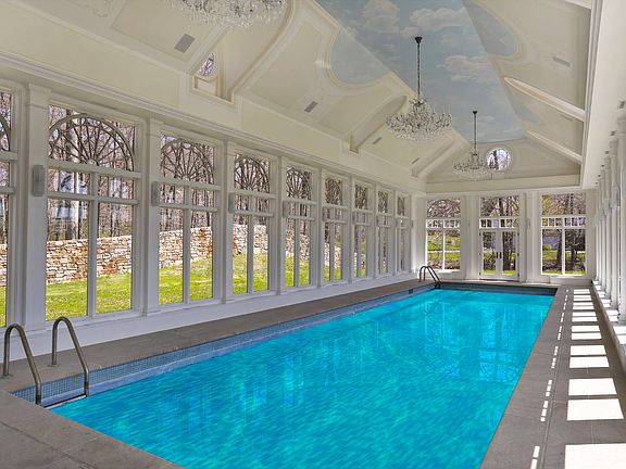 A great opportunity to restore this home to your tastes. This country estate has 4 bedrooms with numerous walk in closets. Grand master bath with steam room. Second bedroom with full bath and third bedroom used as a study. Separate wing over the garages for staff with full bath. Plus a huge third floor bonus room. Plus partially finished walk out basement with fireplace. Two pools. An indoor pool with skylights, chandeliers and French glass doors all around. Plus an outdoor pool with marble patio and ready to be finished pool house / guest house. Gated entrance with stone wall enclosing the estate. Beautiful Mosaic patterned cobble stone circular driveway and 5 car attached garage.