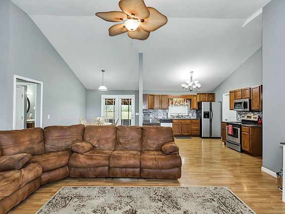 Well Maintained 3 Bedroom / 2 Full Bath Home located on a 1.86 Acre Lot! This 1595 SF home features laminate flooring, vaulted ceilings, and ceiling fan in the living room, laminate flooring, SS appliances, and back splash in the kitchen, carpet flooring in the two guest bedrooms, and a separate laundry. The master features carpet flooring, ceiling fan, and a full bath with double vanities. Outdoor amenities include a covered front porch, screened in back porch, and a large yard. This home is co