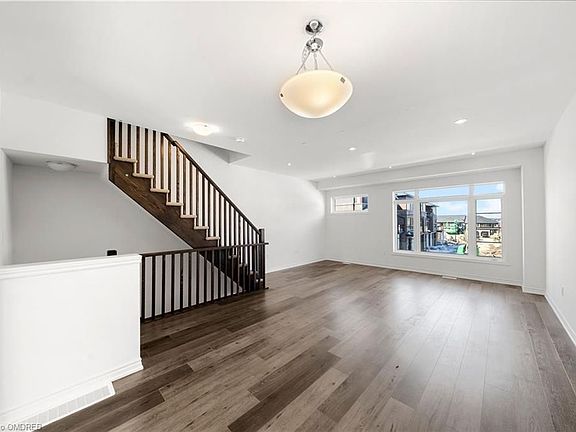 Gorgeous, brand new, never lived-in Losani townhome on Stoney Creek Mountain, with a BACKYARD! What an excellent location, just a minute to Red Hill Valley, Heritage Hill Shopping Centre (countless retail stores: Sobeys, Home Depot, Shoppers, Gym, Cineplex...), great schools, Central Park playground, Eramosa Karst Conservation Area. In a quiet development, this excellent floor plan offers a big and bright open area for your living room and dining, nicely separated from the kitchen with a walkout to a balcony. Enjoy the brand new stainless steel fridge, stove, dishwasher, and built-in microwave! The new, full sized washer and dryer, are very conveniently located on the third level next to your bedrooms. Bedrooms are a great size, with a primary en suite bathroom and double walk-in closets. Use the ground level unfinished space as a bonus room, and enjoy the walk-out to the backyard! Garage has convenient direct entry into the home and garage door opener. Owner will install air conditioner by May 1st, ready for the summer. Note that the builder plans to put in grass as soon as weather permits. This is a strict non-smoking home, and no pets please.