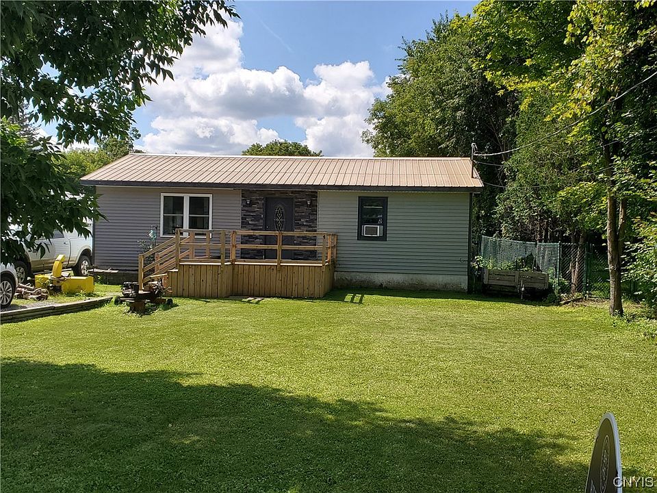 One level living with this village of Adams ranch-style home! Three bedrooms and 2 full baths! Updates include new metal roof, some new windows, new front deck, new flooring in kitchen and living room. Spacious open kitchen and living room with tons of cabinet and counter space. Two of the bedrooms are very large. One bedroom features its own bath with jacuzzi tub. Second full bath is in process of being completed with a five foot walk in shower. Enclosed back porch area is currently used as workshop space. The partially fenced backyard has room for pets, kids, and relaxing. The home is conveniently located close to stores, South Jeff schools and all village amenities.