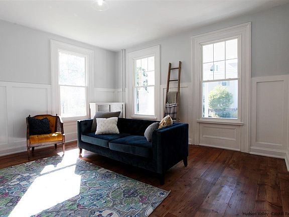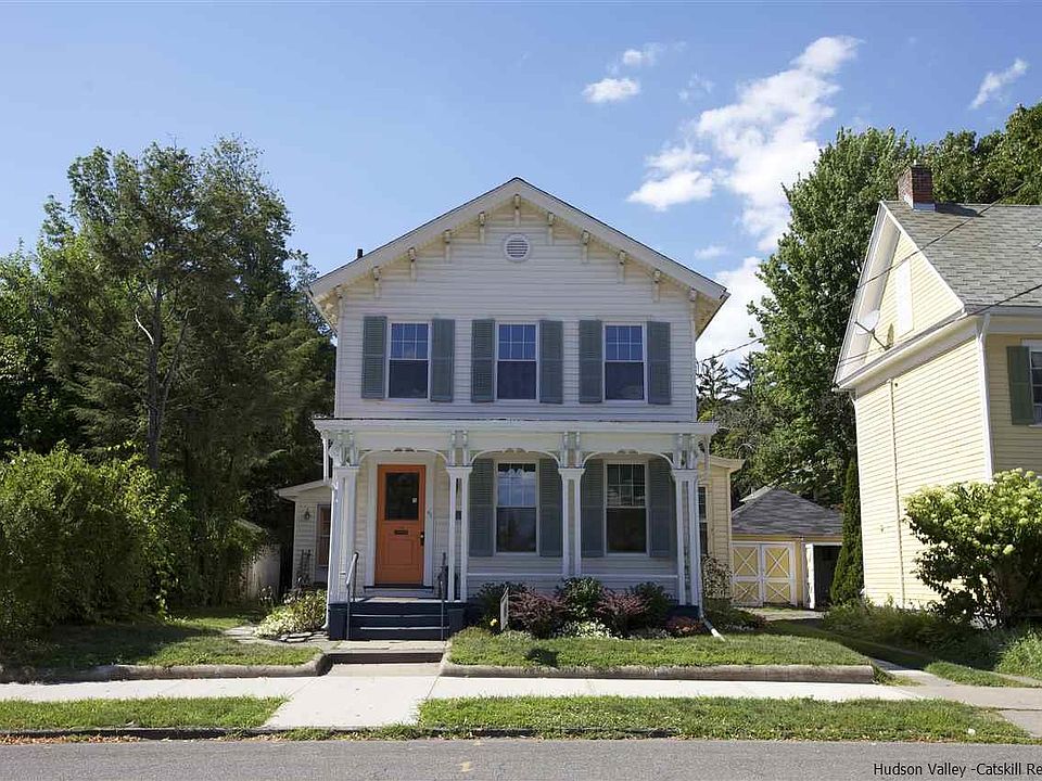 This completely renovated 1800's Colonial Victorian sits in the heart of Kingston's historic Rondout District, just steps from the Rondout Promenade where one can walk to local shops, galleries, restaurants and the waterfront. This meticulously restored home has been transformed and is now the perfect balance of old charm with modern amenities. Upon walking through the front door, one will be welcomed by the original staircase and completely restored wide plank hardwood floors. New energy efficient windows have been installed throughout the home, filling the house with natural light. With all new stainless steel appliances (French Door Refrigerator, gas range, vent hood & dishwasher), stunning Super White Quartzite countertops, dark walnut butcher block island and no shortage of cabinet space, the kitchen and open dining room area are ready to entertain! At the rear of the house a 3-seasons porch provides the perfect place for an outdoor dining room or peaceful spot to sip morning coffee and look out onto the private enclosed backyard. Thoughtfully relocated, the laundry has been moved to the first floor where you will also find a new half bathroom with custom antique vanity sink & slate floors. On the second floor you'll find the master suite with built-in closets & a full en-suite clad with double pedestal sinks, marble floors and beautiful white subway tiled walls. Also on the second floor you will find two additional spacious bedrooms with period details including original mantelpieces and tons of storage, rare in a century-old home. During the renovation an additional 3-piece bathroom was added for guest use. Original Carriage House has been left in place, this bonus building footprint allows new owners to create the space of their dreams, from an art studio to a home office, the options are endless!