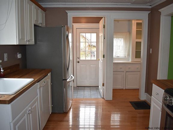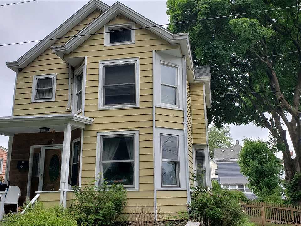 Quaint and cozy, this 2 bdrm/1 bath home is situated on a dead end street conveniently located in a popular Midtown Kingston. All the works been done here with a kitchen and bath update. In the kitchen, new gas stove, refrigerator, microwave, counter tops, cabinets, and wood flooring that's 2 years old. But don't worry this owner fell in love with the tin ceiling so it's still there! The wood flooring throughout the house is great condition. Upstairs there's 2 spacious bedrooms and an updated bath with a new vanity and flooring and a classic claw foot tub! Out back, there's a Trex deck with new railings overlooking the backyard, barn and garden area. There's beautiful landscaping all around the house. Lastly, this house has central air, a furnace 8 years young, the roof is approx 10 yrs old and a new washer and dryer! Run, don't walk this home won't last!!!