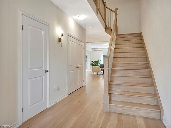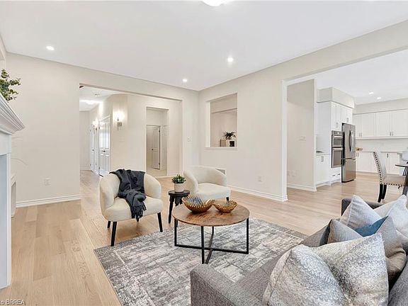 Experience nature at its finest at 61 Stauffer Road in Brantford's Nature's Grand Community. This property sits on a private, over-sized look-out ravine lot with a view of a small forest with lots of mature trees that leads to the Grand River. Immerse yourself in a neighborhood designed for outdoor enthusiasts, with a network of trails weaving around the property and plans for a future park just steps away. This immaculate move-in ready home seamlessly blends modern design with comfort. No detail has been overlooked, with over $130k invested in luxurious upgrades, elevating this home beyond its base package. Indulge in hand-scraped light oak hardwood floors, oak stairs with stainless steel spindles, and upgraded tile throughout. Experience style with quartz countertops, shaker-style cabinetry, and an upgraded faucet package adding a touch of luxury to your kitchen and bathrooms. The customized kitchen/breakfast nook area features a large island, wall-mounted appliances, built in cooktop, coffee station/breakfast bar, tile backsplash, and a 6' wide patio door providing a picturesque view of the forest. Enhance your living experience with refined features such as recessed pot lights, elegant sconce lighting, and smooth finish ceilings, elevating the aesthetic of every room on the main level. Gather around a cozy gas fireplace in the living room, perfect for intimate evenings or relaxed gatherings. Retreat to the spacious primary bedroom, boasting dual walk-in closets and a spa-like Ensuite with a deep soaker tub, separate shower, and dual vanities. Benefit from modern amenities with 200 AMP service, ensuring efficient power distribution for all your electrical needs, and prepare for future expansion with a bathroom rough-in in the basement. With convenient access to the 403, this property offers the perfect blend of tranquility and convenience. Don't miss your chance to call this exquisite property home! Schedule your showing today!