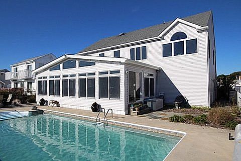 One of a kind custom built home with almost 3,000 sq ft. Great home for entertaining. Living rm/dining rm open to large 4 season rm with double sided fireplace. Kitchen and 4 season rm has tile floor and all else has hardwood. Custom kitchen with crown molding on cabinets with all bottom cabinets having drawers. Upstairs is 2 master suites and 2 other rms. One is a bedroom and the other could be a bedroom very easily. All bedrooms and living room have hardwood floors. Home has just been totally repainted. Outdoors is a 16x32 in ground pool with pavers. There is also the possibility of putting another bedroom on the 1st floor.