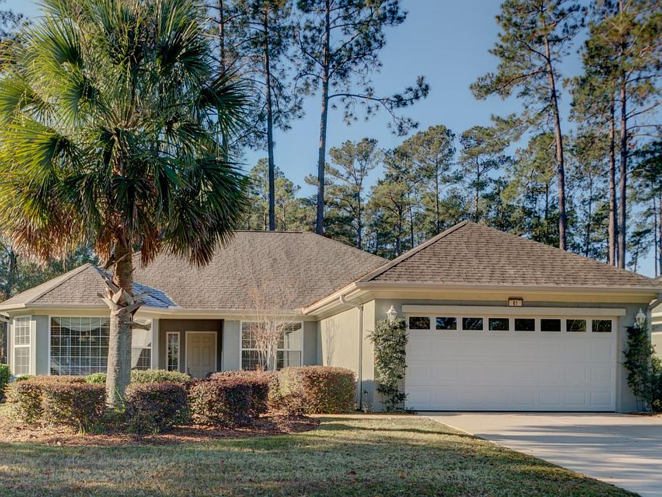 Come see this inviting light & bright Hatteras model with an open floor plan and private, wooded lot! Enjoy the secluded lagoon and wooded view from your large heated and air-conditioned Carolina room or cozy up to the fireplace flanked with custom built-ins. Spacious eat-in kitchen with new granite counters, sink, faucet, hardware, prep island and breakfast bar make this home great for entertaining! Generous master bed and bath, tall cabinets and large walk-in closet. Additional features include laundry room, den, new light fixtures, central vac, and more. Rent includes landscaping and pest control. Available through June 2018. Absolutely no pets. Sun City is a gated community for adults 55+ years old.