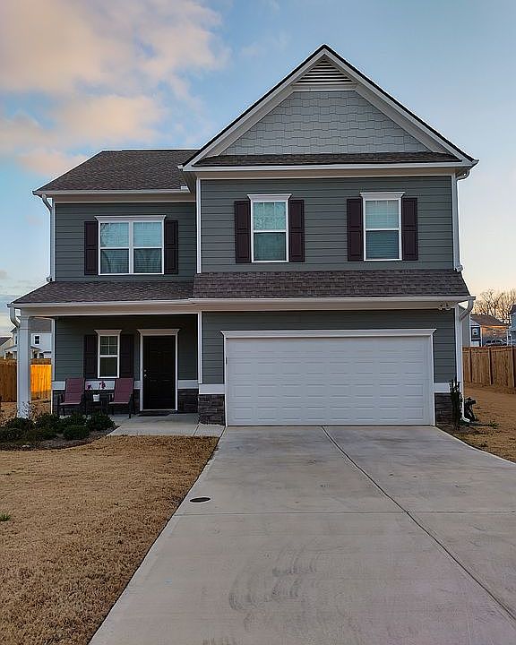 This two story single family home is a must see!! With it's covered front porch, this home has a welcoming wide entry leading to a traditional, formal dining room that's perfect for entertaining. Both the kitchen and family room live to the rear of the home, with convenient access to the covered back porch. Unexpected luxuries upstairs include a dedicate, private sitting area in the owner's suite, as well as open loft hallway area. Large U shaped walk-in closet and private bath with oversized tub in owner's suite. Three secondary bedrooms and a full bath are located off the loft, as is ample laundry room. Community amenities include clubhouse, gym, playground, covered outdoor picnic area, basketball court, kiddie pool, and swimming pool. Annual HOA $500. Showing by appointment and open house. Contact seller lima.ambato@gmail.com or (470) 601-0154