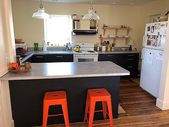 Small three bedroom two bath house with front and back porches. Big attached storage shed and private driveway. Hard and softwood floors, new kitchen and downstairs bathroom. Washer/Dryer hookup. Owners pays water and sewer, tenant responsible for oil, electric, lawn care, snow removal and Trash removal.