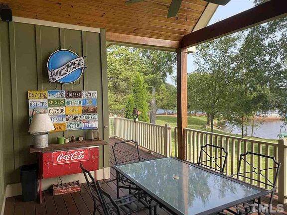 Exceptional home in Talley Pointe subdiv. One level living in this 3 bedroom, 3 bath home. Open floor plan with a kitchen island, dining & family room. Home is perfect for entertaining year round. Enjoy the covered porch or hang out on the double slip boat dock and swim in the deep water. Play games on the huge level lot. Immaculate lawn of zoysia grass with irrigation. Porch & dock are made of Brazilian Walnut. In the cooler months enjoy the outdoor fire pit or the stone fireplace in the family room.