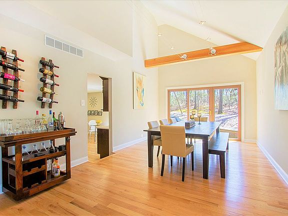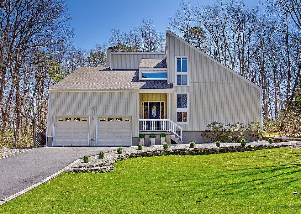 Must see dream home in a park-like setting, with beach access, all in a charming lake community! Don't miss out on this stunning 4 bed, 2.5 bath, 2,100+ sq. ft., one of a kind contemporary residence on over half an acre of private, natural, wooded land. This property boasts stunning vaulted ceilings, wood beams, light wood floors, a bright open floor plan, and contemporary finishes. Large windows fill the main floor with natural light. A welcoming living and dining room offer soaring ceilings with recessed lighting. Your spacious eat-in kitchen is fitted with built-in matching stainless steel appliances, a lovely subway tile backsplash, high-quality solid surface counter-tops, solid wood cabinets and sliding doors leading to the patio. Cozy around the stone front fireplace in the comfortable family room which also has sliding doors to the large sunroom. This beautiful airy room is adorned with skylights along the cathedral ceiling and a panoramic view of the woods. A laundry area and powder room with a featured wood slatted wall complete this floor. Head upstairs to find the spacious bedrooms including a Master Suite. This suite is complete with a dramatic vaulted ceiling, an overlook to the lower level, a walk-in closet, dressing area with vanity, and en-suite bath. On this floor, you will also find an amazing shared bath with a double vanity, back lite mirrors, a frameless shower and floor to ceiling tile throughout. Step out on the patio for grilling or head down the walking trail to the beach and enjoy the peaceful lake. In the Tamarac community, you have a beautiful outdoor oasis of tall shady trees and leisurely waterside entertainment. The beach area, lifeguard, picnic tables, tennis, basketball court, and walking trails offer lakeside living at its best. Not to mention you are close to all major roadways making for an easy commute. Don't miss out Schedule an appointment today!