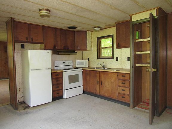 This 2 bedroom single wide can be a great home or income producing property with a little TLC. One bedroom offers a 1/2 bath. The other has the full bath next to it. A laundry area off the hallway. Decent sized kitchen/dining area and living room. The huge 2+ car garage with lots of storage space or make a room there!