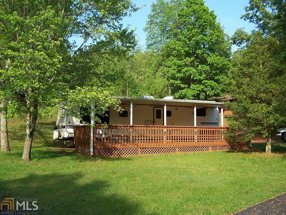 SPACIOUS COVERED PORCH FOR ENTERTAINING, OR KICKING BACK OUT OF THE SUN. NICE OPEN LOT FOR OUTDOOR ACTIVITES. THIS RV HAS 1 BEDROOM, 1 BATH, DINING AREA, & DEN WITH SLEEPER SOFA. BATHROOM WITH SHOWER AND SEVERAL STORAGE CLOSETS THROUGHOUT. SITUATED IN A GATED MOUNTAIN RV PARK WITH SWIMMING POOL AND TROUT STREAM ACCESS.