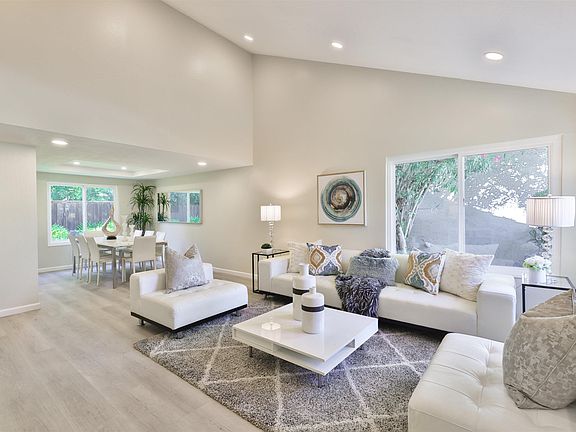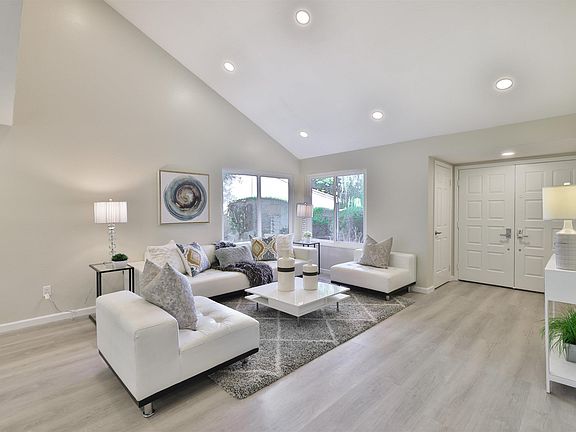 Beautifully updated home perfectly situated at a quiet court location. Steps to community pool and tennis court from stairs on the court. New laminated flooring in all living areas and tile floors in upstairs bathrooms. New remodeled kitchen features quartz counter, new white soft close cabinets, stainless steel appliances. Recessed ceiling lights in living, dining, family room, and kitchen. New well appointed luxurious master bathroom with double vanities on quartz counter, oval tub, and an oversized walk in shower. Three spacious bedrooms upstairs. Laminated flooring throughout and tile floors in upstairs bathroom. Very light and airy floorplan with cathedral ceiling. A nice backyard with big lawn area and concrete patio. Easy to award winning schools, hiking trails, parks, shopping, and freeway access. This a a great place to call home.