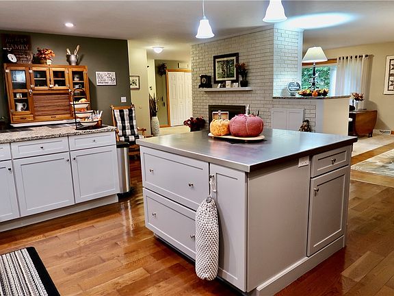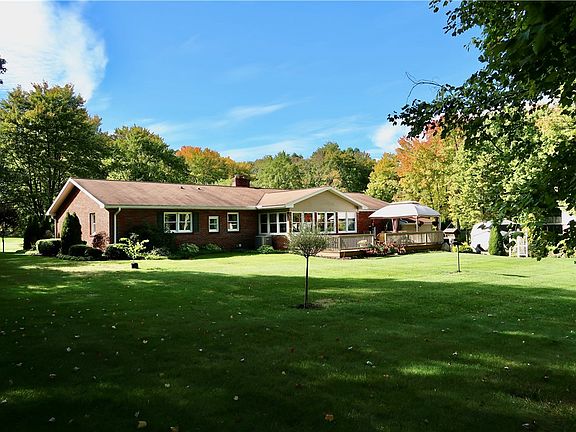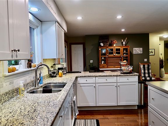 AMAZING IMMACULATE SPRAWLING RANCH! Stately situated on a half-circle 1ACRE LOT. Unique & Spacious with one of a kind floor plan. Enter into amazement in the wide open foyer. The Extra Large Open Kitchen offers updated granite counters, endless storage, lrg. utility island with electric,eating bar area and enough room to sit in front of the gas fireplace.The living room is also host to the opposite side of the open fireplace with room to expand into an additional living or dining area. The WIDE hall leads to the 3 nice sized bedrooms and main bath. Master bedroom complete with full bathroom.1st floor laundry room. Extend your living and entertainment areas to the lower level basement offering a wide and comfortable access leading to endless rooms and options and another fireplace. Unique and convenient pathways to the EXTRA LARGE 3 car grg areas offering outside access to the patio, deck and beautifully landscaped lawn. A wonderful closed porch for relaxation all yr.FANTASTIC LOCATION!