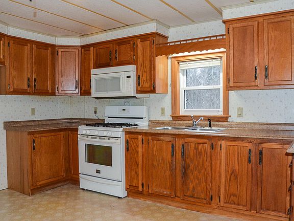 Countryside Single Wide. This 2 bedroom, 2 Bathroom sits on a 2 acre lot. The large eat in kitchen has plenty of cabinets and counter space. The spacious living room has many windows to let the sun shine in. The primary bedroom features a large walk in closet and full bathroom. On the other end of the home is the second bedroom with double closets and just outside the door is another full bathroom. The laundry room is right across from the bathroom. In 2023 new carpets, furnace, and sink vanities were installed. In 2022 a new heat pump and hot water heater were installed. Home has a metal roof and ramp to enter the home. Outside you will find a large yard with perennial gardens and two large sheds. It's about 20 minutes to Waterville, 40 minutes to Augusta and 50 minutes to Bangor. This won't last long. Book your private showing today!