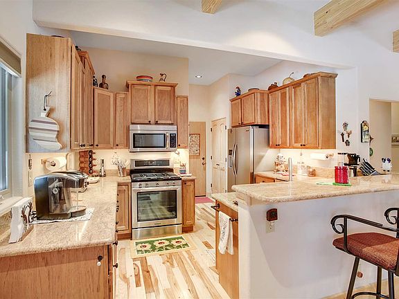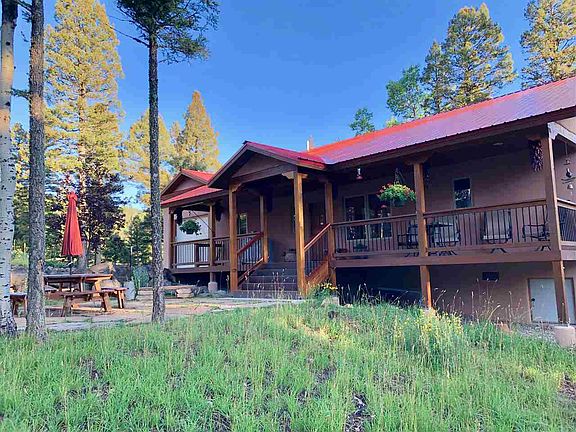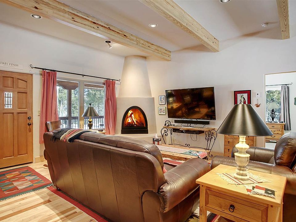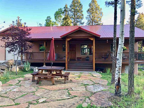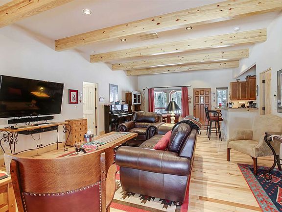 This custom Lindsey built home was completed at the end of 2013 and has so many upgraded features! All on one level, it has 3 bedrooms, 2 bathrooms, an oversized 1 car garage, covered decks and a beautiful flagstone patio. Walk into this beautiful Southwest style home that has been meticulously cared for and you will find mill run Hickory floors, 10 foot ceilings, 6 inch baseboards and solid pine doors. The great room has 10 foot ceilings that are accented with wood beams and a beautiful gas Kiva fireplace that will give you all of the cozy warmth you want without the mess. The kitchen has custom made Hickory cabinets, stainless steel Kitchen Aid Appliances, a chef's sink, granite counter tops and plenty of storage. The master suite has an exterior door that gives you access to a covered deck, a his and her closet, double sinks with Rainforest granite countertops and a large walk in shower tiled with travertine. The Saltillo tile on the bathroom floor adds to the southwest charm that you will love. The guest wing has 2 large bedrooms with a bathroom and can be closed off for added privacy. This home has a circle drive way in the front so that you and your guests have easy access to the front door and a large gravel parking area on the backside with access to the garage. You can unload your groceries from the oversized garage with an epoxy floor, right into your kitchen with no stairs!! Located on Vermejo Circle, access to the Carson National Forest is just a few minutes away. With it's high level of quality and charm, you are going to love this home!
