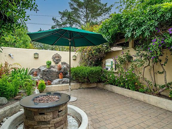 Within the Adobe walls and beautiful gate is a wisteria covered pergola leading to the thick wooden front door, a fire pit to the right in a private patio area. The outdoor living space features manicured gardens and paths that lead to the freestanding studio/office in the back yard. Inside this home features vaulted ceilings in a grand room connecting the living room and large chef's kitchen, a family room is open to the great room but set slightly to the side. The kitchen and main grand room have large feel open but cozy perfect for entertaining or quiet time at home with a book. The stucco walks have arched nooks inside and out. Master bedroom features a large custom walk in closet and luxurious gorgeous oversized master bathroom. From this garden oasis you are only a short stroll to the shops and restaurants at Del Monte shopping center and a short ways to Downtown Monterey and the Bay.