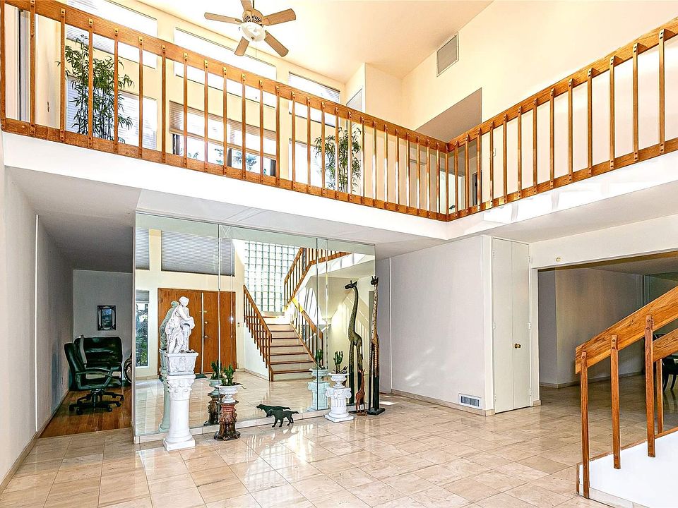 The whole house is filled with natural light. Beautiful and quiet. good view. Perfect for those looking for some private relaxation. Double-height ceilings and large skylights. Beautiful formal dinning room. renovated kitchen. 4 bedroom 2 full bathroom 2.half bathroom spacious master suite with an oversized closet and nice bathroom., home office, exercise room Full finished besetment with small bar. CAC . 2 cars garage. very nice and big back yard.