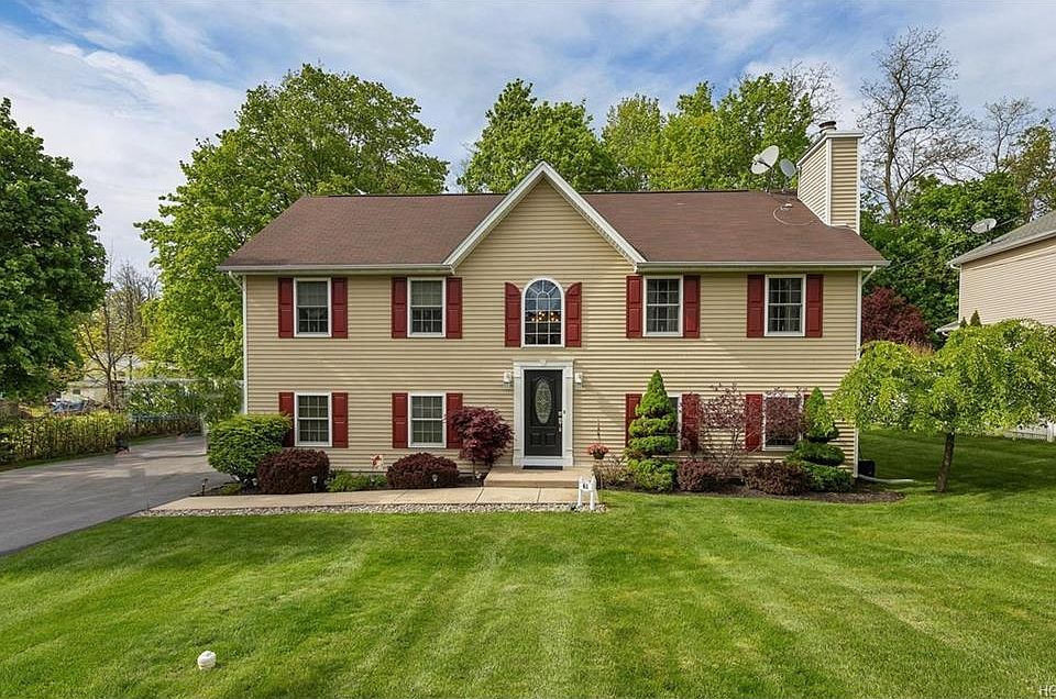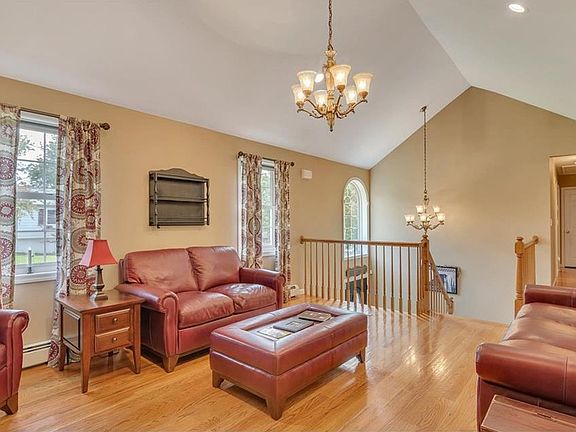 What do you get when you cross the practical floorplan of a bilevel with the space and style of a colonial?This outstanding like new contemporary bilonial that has features and upgrades you wont find in new construction or often at this price point!Upon entering you will note high ceiling and open,spacious layout.Wood burning fireplace and custom mantle warm the light filled living room flowing nicely to dining area.Kitchen is the heart of the home with center island,granite countertops,sleek stainless steel appliances and tiled backsplash.Enjoy outdoor entertaining on large deck or gather around two paver patios complete with firepit for those cool summer nights.Large,level yard backs to woods for peace and privacy.Master bedroom boasts full bath with new fixture and his and her closets.Lower level family room and additional bedroom with homes third bath is an ideal set up for guest space.Outstanding commuter location just minutes to train,highway,shopping and more!See video link.