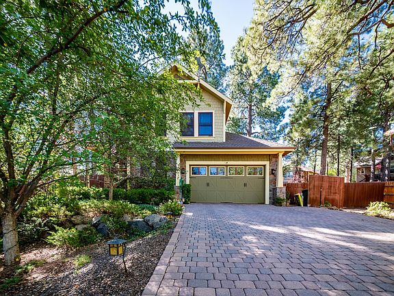 Custom Built Craftsman style, home in desirable Ponderosa Trails. Privately situated on a 1/3 acre lot, featuring extensive landscaping with fruit trees, brick paver driveway, stone accents, and wood-framed windows. Home features in-floor radiant heat , gourmet kitchen, granite counters, double ovens and wine fridge. Great room with gas fireplace, and French doors to the backyard. Master suite features a jetted tub, large walk-in shower, fireplace and a walk-in closet. An outdoor entertainer's dream - with an impressive covered back patio with full wet bar and seating to enjoy the cool Flagstaff summers. Hot tub, grass and mature landscaping compliment the serene neighborhood. Extensive painting, new carpeting, remodeled guest bath add to this home's desirability!