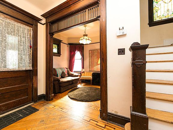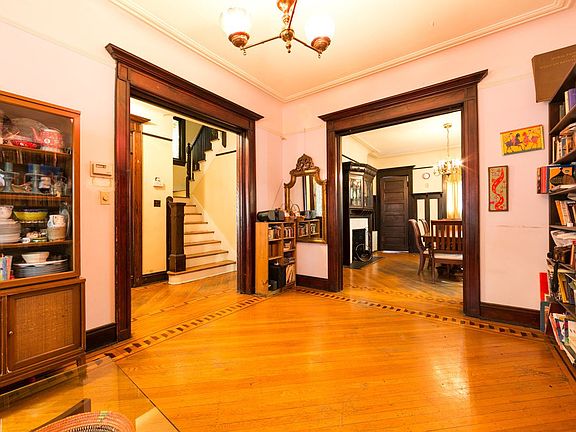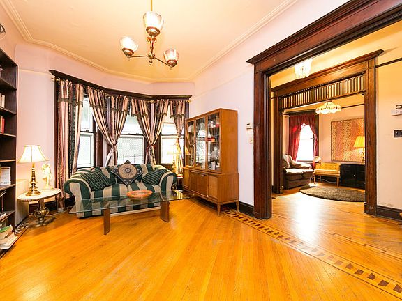 Fiske Terrace- Historic Land-marked Midwood Park- Nestled in between the land-marked & rebuilt Avenue H train station & the express train on Newkirk Avenue, with a short walk to the bustling restaurants & markets on Cortelyou road & Brooklyn College sits this 1 fam detached 3 story colonial revival on the perfect tree lined cul-de-sac street. Total 5 bedrooms, 3 1/2 bath w/full finished bsmt. Master suite, master bath w/skylite, original woodwork and details thru out, bay windows, Orig hardwood floors w/inlays, stained glass windows, sliding pocket doors. Storage attic above 3rd fl. Full width front open porch, private yard, private parking w/one car garage.