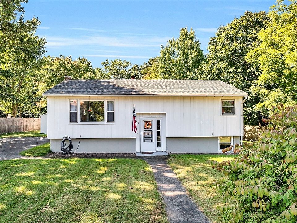 Empty Nesters now....on to the next chapter..Renovated @2020..offering move in condition 6 Rm (2 finished rooms on lower level heated by baseboard electric) , 3 Bdrm 1 bath Raised Ranch on beautiful lot which include wood deck and good sized storage shed for ample storage. Per the sellers, Mass Save came out did the energy assessment and took care of air sealed and put 15 inches of new insulation in attic and took out all the old insulation done in 2023. Showings begin Saturday at 1:30 must have confirmed appointment. Please note that we have accepted an offer but will show for backup offers until contingencies are met.