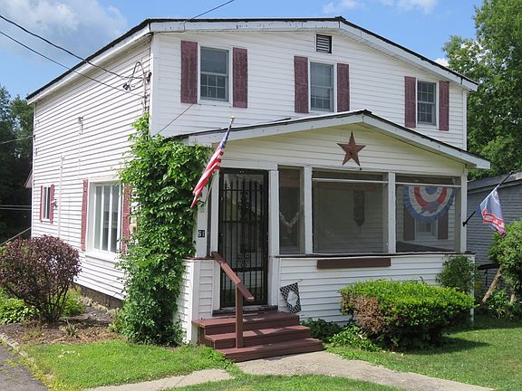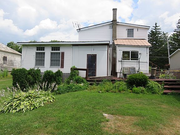 THIS WATERFRONT HOME IS PRICED TO SELL & MOVE-IN-READY! 4 bedrooms, 2 nicely renovated full bathrooms, HUGE 12x16 eat-in updated kitchen w/modern appliances, HUGE 16x27 living room w/wood pellet stove & sliding doors to waterfront back yard, 11x17 dining room w/wood-burning fireplace. 2-story, 2-car detached garage (needs repairs) & BONUS 34x34 storage building for work shop or business. +/- 136 feet waterfront on the Salmon River & access to the St. Lawrence River. Convenient Village location close to all amenities and Quebec border. All furnishings, televisions & appliances will be sold with the home. AT THIS LOW PRICE, THIS HOME WILL SELL FAST. With approved terms and deposit, owner financing is available. CALL TODAY FOR AN EXCLUSIVE SHOWING!
