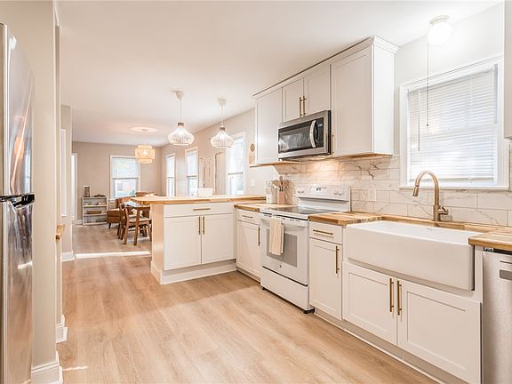Beautifully updated and ready for you to move in! Step inside to a spacious open concept living and dining area filled with natural light. The large, updated kitchen is perfect for entertaining, featuring butcher block countertops, a generous island, new appliances, and tons of cabinet storage. Also on the 1st floor, a generous sized bedroom, full bath, and a unique feature known as a "clo-fice" (closet turned into an office). Upstairs, the entire top floor is dedicated to a giant master suite with its own private full bath and plenty of space to relax. The many updates include- new LVT flooring and vinyl windows throughout, furnace, central AC and H20 (2022), freshly sealed drive (2024), the fenced backyard is perfect for outdoor gatherings! Located on a quiet neighborhood street, its prime location is close to expressways and everyday conveniences. This move-in-ready home has everything you're looking for!