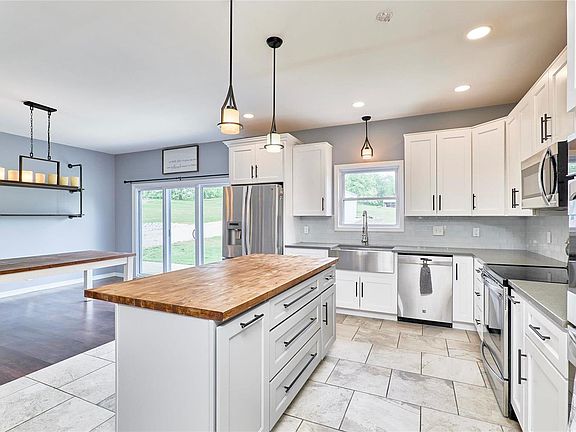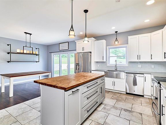 BOM No fault of Seller or property, buyers home didn't sell. 3 private acres NO RESTRICTIONS, 30x50 Insl Building, situated at the end of the drive ensuring peace & privacy. This 4 BR/4 bath Ranch, including 2 master suites, that spans over 2000 sq. ft. on the main floor alone. Stunning luxury kitchen completed in 2020 boasts dual ovens, solid surface counters, charming farmhouse sink, butcher block island, & stainless steel appliances. Luxury vinyl plank flooring, tasteful light fixtures, ceramic tile and More throughout. 2 master suites, provides an ideal setup for multi-generational living or accommodating guests in style & comfort. The LL extends the living space including a full bath & convenient walkout door w/patio. Outdoor enthusiasts will be thrilled by the 30x50 building, a perfect space for storage, workshop 220 amp or projects. The landscape package and setting completes the package! Experience the joys of the country, perfect property for 4H projects or Home office!