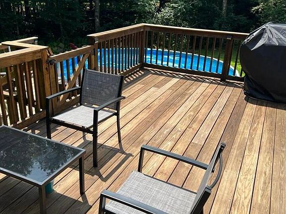 Walkout to a large deck and swimming pool perfect for relaxing or entertaining