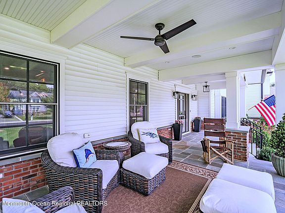 BETTER THAN NEW... shore colonial showcasing exquisitely updated landscape design & beautiful perimeter plantings. Phenomenal outdoor living space incl. rear porch w/ FP +expanded patio, enhanced outdoor kitchen & gorgeous pergola by Walpole w/ retractable canopy. Equally impressive interior offers bright, spacious, flowing floor plan w/ exceptional finishes & details throughout. Sprawling gourmet Kitchen features massive center island, eating area +Pantry. Adjacent Great Room complete w/ FP & fully equipped wet bar. Substantial size BDRMS incl. Grand Primary Suite boasting walk-in closets, Lounge & lavish Bath. Bonus Room +space for Gym w/ dual attached/detached 2 car garages. Close to schools, parks, beaches, ferry/train & all the shore has to offer!