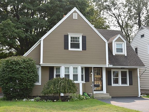 Spacious, vinyl sided home with flexible floor plan. Architecturally looks like a cape cod but lives like a colonial. Beautiful, remodeled kitchen with complete stainless steel appliance package. Large living room with fireplace, formal dining room, plus a family room to spread out. In addition, there is a room off the back that is currently used as a dining room that could be easily converted to a first floor bedroom with its own powder room. Enough space to reconfigure for a full bath. While not a true in-law, it could serve that purpose. Or how about a rec-room or office/computer/ hobby room? Lots of hardwood floors, many recent Anderson, vinyl windows, new furnace 2017, central air, Greenlight internet. Nice size, fenced backyard with large deck and new 8' x 12' storage shed. Great neighborhood with all kinds of shopping right around the corner. Convenient to the expressway, downtown, Lake Ontario, Irondequoit Bay. A great place to call home!