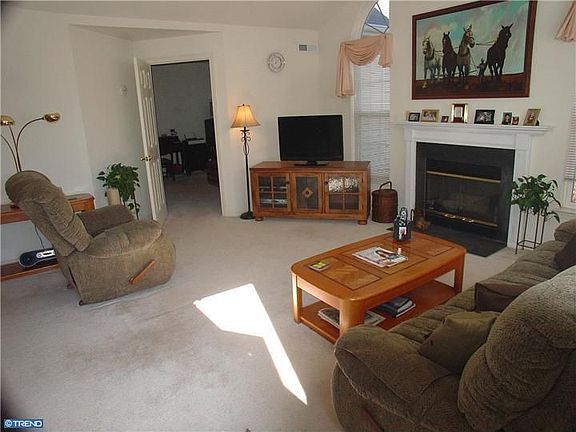 Pennington Point, Washington model w/vinyl siding & brick accents, one-car attached garage w/auto opener & interior access, fenced in patio w/perennial gardens, front/storm door entrance to living room w/volume ceiling, upgraded carpeting, gas, fireplace w/slate surround & mantle, custom blinds & window treatments throughout, formal dining area w/open service bar to the kitchen, eat in kitchen w/vinyl fl, bleached oak cabinets, toned counters, double stainless sinks, electric, self clean stove, built in micro, dishwasher, refrigerator & pantry storage, laundry area, complete w/washer, electric dryer, built-in cabinets & garage and walk-up attic access, attic is floored & there is a utility closet. The first floor master bedroom suite boasts a volume ceiling, toned walls, walk in closet and deluxe full bath with a seated shower stall and vanity with full mirror. The second bedroom/den features closet storage and access to the full hall bath with tub/shower and ceramic tile floor. There is an attic fan.