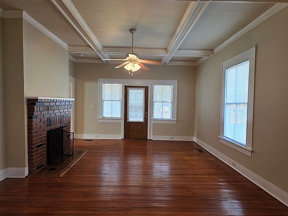 A gorgeous historic home that has been lovingly restored. The rooms are large with the original hardwood floors. Both the living and dining rooms have the original coffered ceilings. All rooms have fireplaces - please note: these are NOT working fireplaces. The kitchen has been updated with all new cabinets and appliances. In the corner is a large pantry. Off the kitchen is a sunroom. The primary bedroom is at the front of the house and has a walk-in closet. The bathroom is located between the bedrooms and has been completely updated. The fully fenced yard is deep and has a storage building. Call today to schedule a tour – this home won't last long.