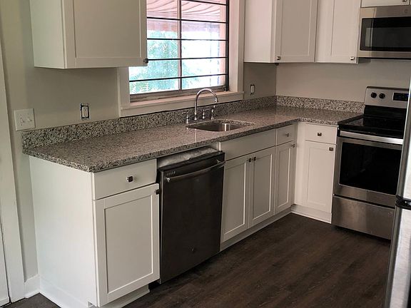 2 Bedroom, 1 Bath, 1287 sq. ft. Fully renovated with new cabinets, granite countertops, stainless refrigerator, stove, built-in microwave and dishwasher. Bath features new double bath vanities, toilet, tile and original claw foot tub/shower. New lighting, faux wood blinds, refinished original hardwoods and flooring throughout. Front and back porch offer great space for relaxing and enjoying sunset views of downtown. Fenced back yard. Available 9/1/22.