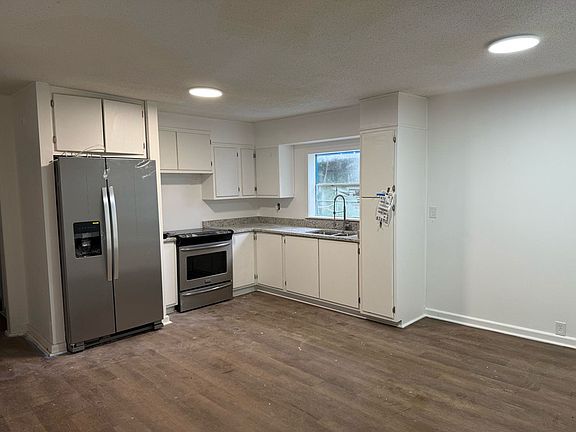 Large porchStainless steel appliancesGranite countertopsOwn kitchenBrand-new two-door refrigeratorNew vinyl flooring