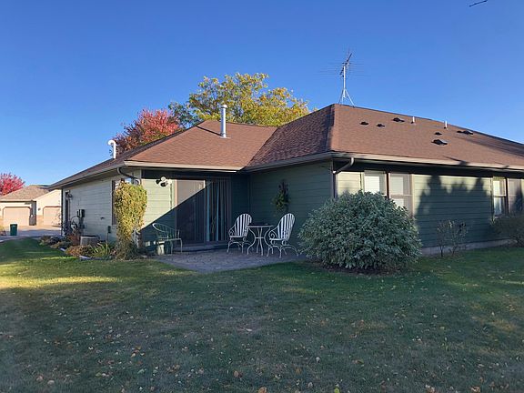 One level townhome living in a small 8 unit association! 2 bedrooms and 2 baths. Open kitchen/dining area adjacent to the living room that flows nicely into a sun room with French doors and access to outside patio. Abundance of natural light, with vaulted ceilings, laminate flooring, in-floor heat, bull-nose finishing, display shelf and crown molding features. Interior of garage is finished. Pretty perennial gardens adjourn this property. This home is comfortable & cozy!