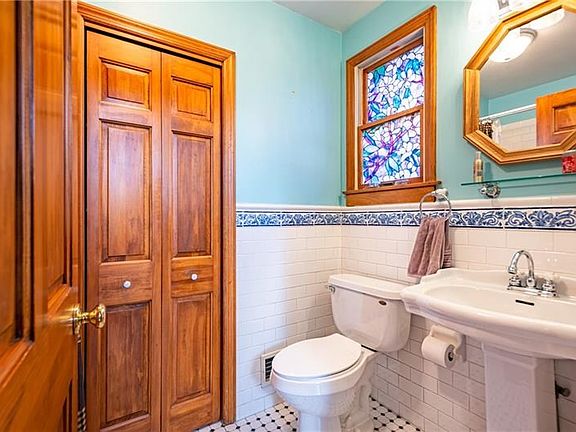 Absolutely Stunning Brick Home located just 10 minutes from Downtown Pittsburgh! Features include an AMAZING Family Room addition with beautiful Hardwood floors, Cathedral Beamed Ceiling with Ceiling fan and Skylights, floor to ceiling Stone Wood Burning Fireplace, wall of Double sliding glass doors leading to deck and back yard bringing in a ton of natural light, and a Full bathroom with white subway tile and decorative tile accent, and Jet Tub!! Hardwood floors in the Living Room and Dining Room along with crown molding and two stained glass windows flanking the decorative fireplace, Ceramic Tile flooring in the updated Kitchen with plenty of cabinet space! Upstairs bedrooms have new carpeting and ceiling fans, Master bedroom has lots of closet space, main bathroom has been updated with laminate flooring, seated shower, subway tile with mosiac tile accent and wainscoting. Full bathroom in the basement, updated electrical, gorgeous landscaping in the back and a covered from porch!!